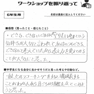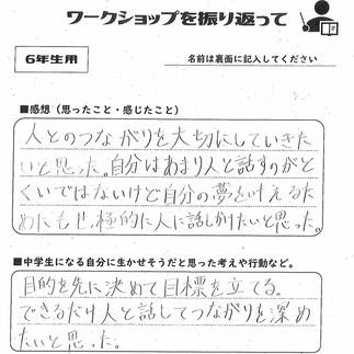 「目標の大切さが強く心に響いた児童がたくさんいて、実施できたことに感謝します」と嬉しい感想をいただきました。